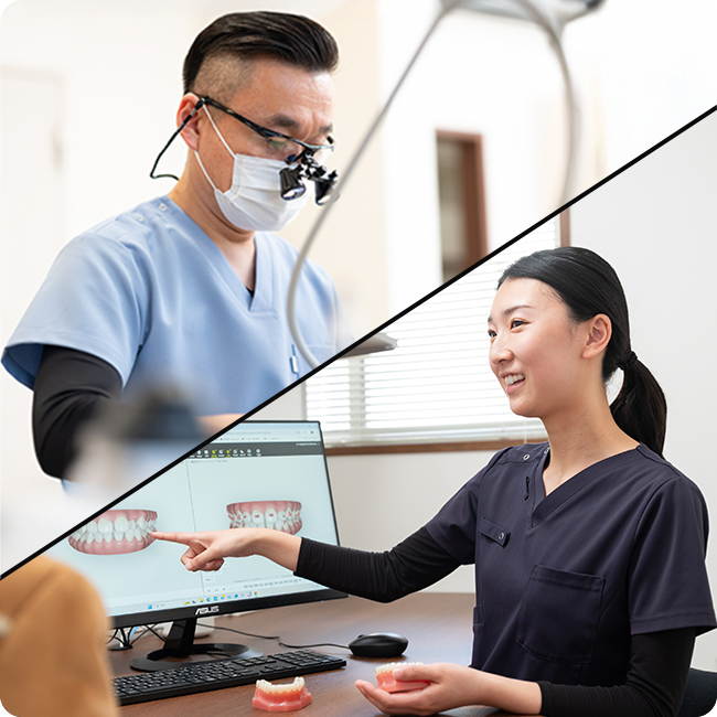 「歯並びは気になるけれど、矯正は不安…」というかたも、どうぞご安心ください。しっかりとお話を伺いながら、納得いただけるよう丁寧に説明し、治療に対する不安や疑問にも親身に対応いたします。